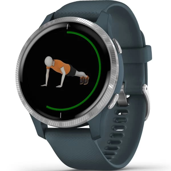 - Coach virtuel au poignet lors de vos entraînements grâce à des animations faciles à suivre et gratuites directement sur l’écran de votre montre pour la musculation, le cardio, le yoga et le Pilates